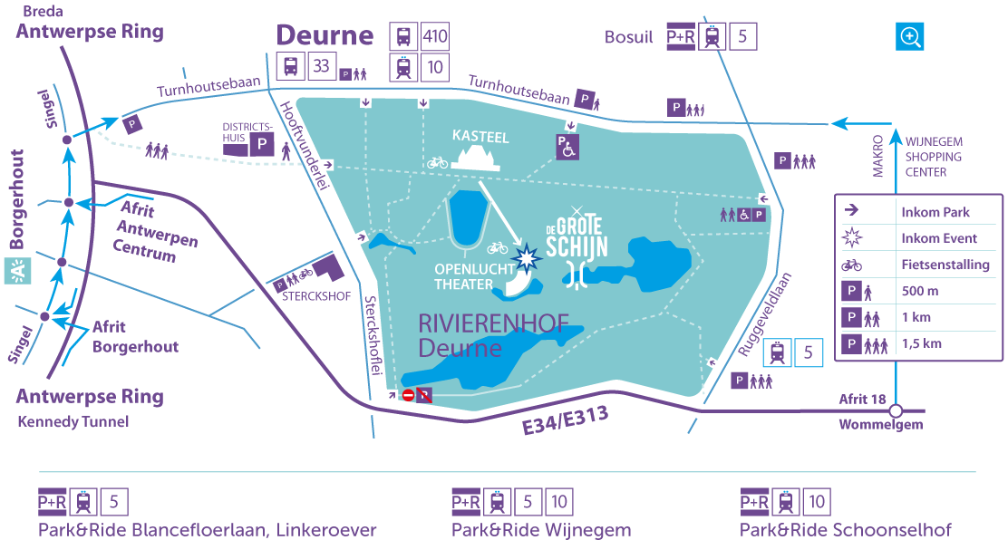 Bezoekers met een parkeerkaart voor personen met een handicap kunnen parkeren achter het domeinwachtersgebouw (inrit via de Turnhoutsebaan 246) en op de voorbehouden parkingplaats op Parking Oost (inrit via de Ruggeveldlaan).